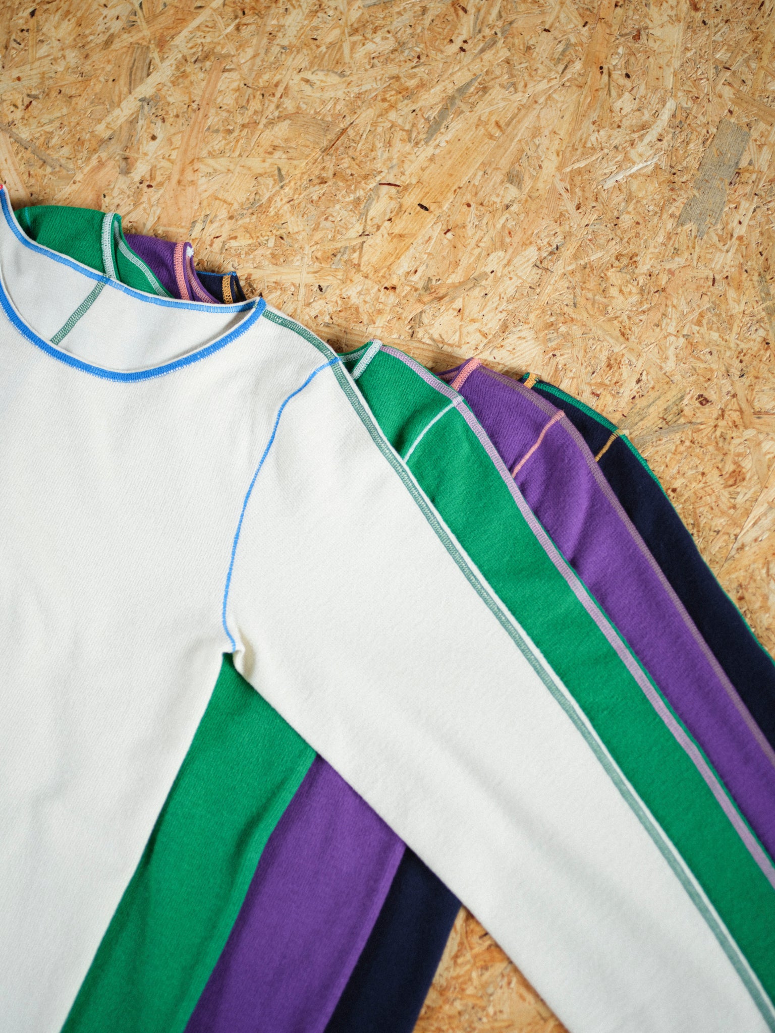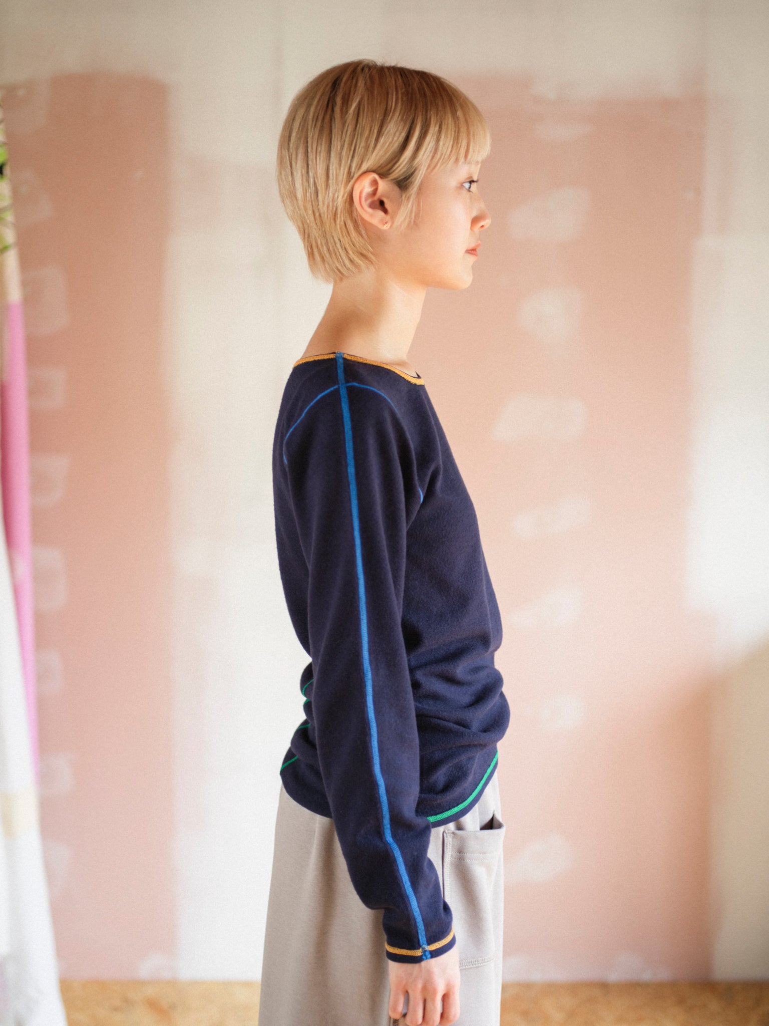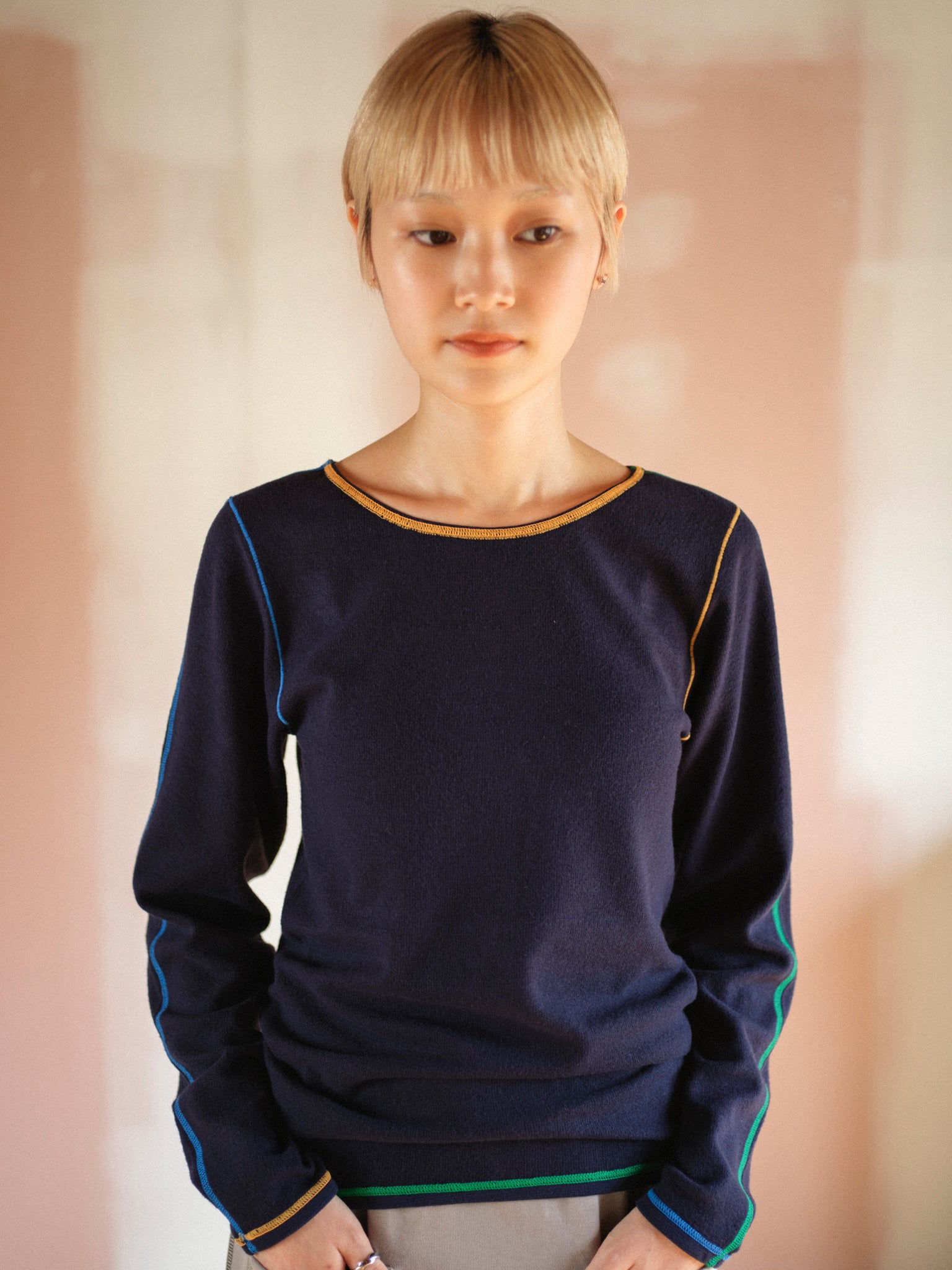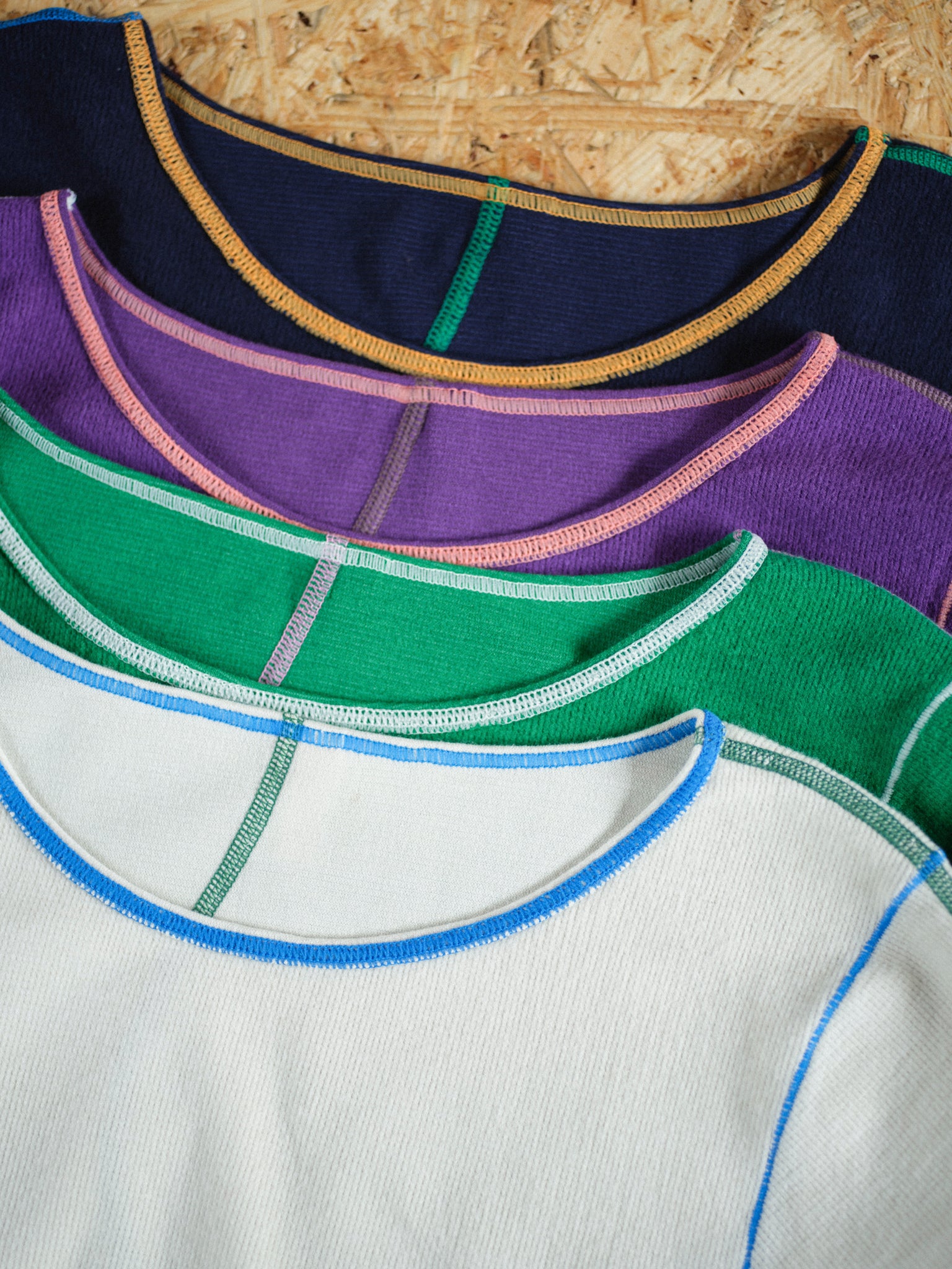 各ステッチに異なる色を配色し、見せてもかわいいインナーです。