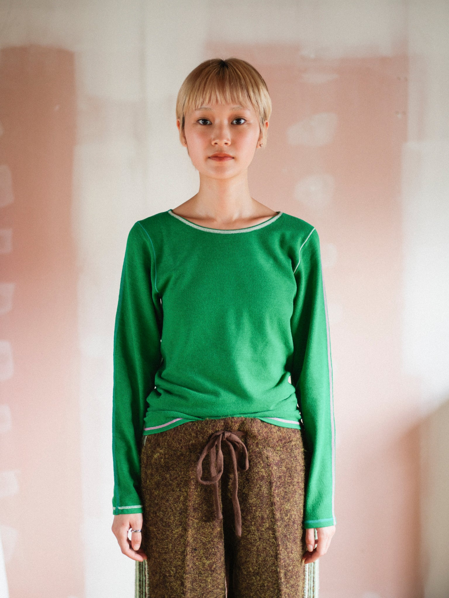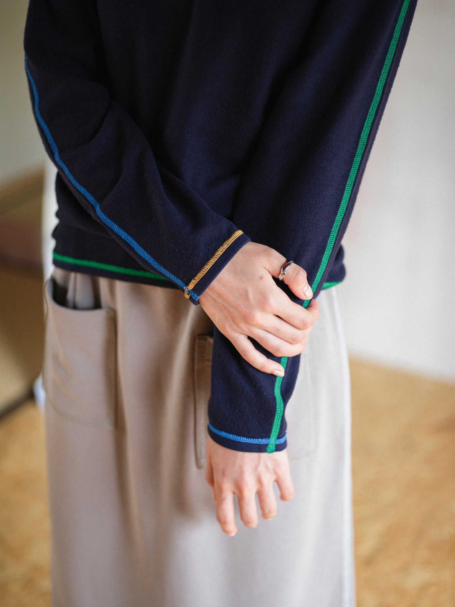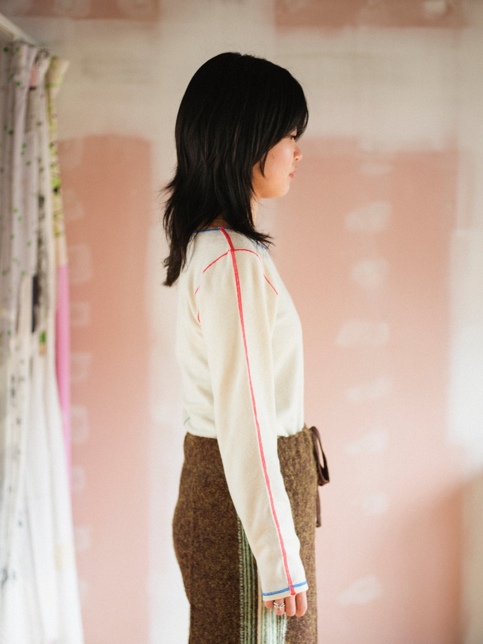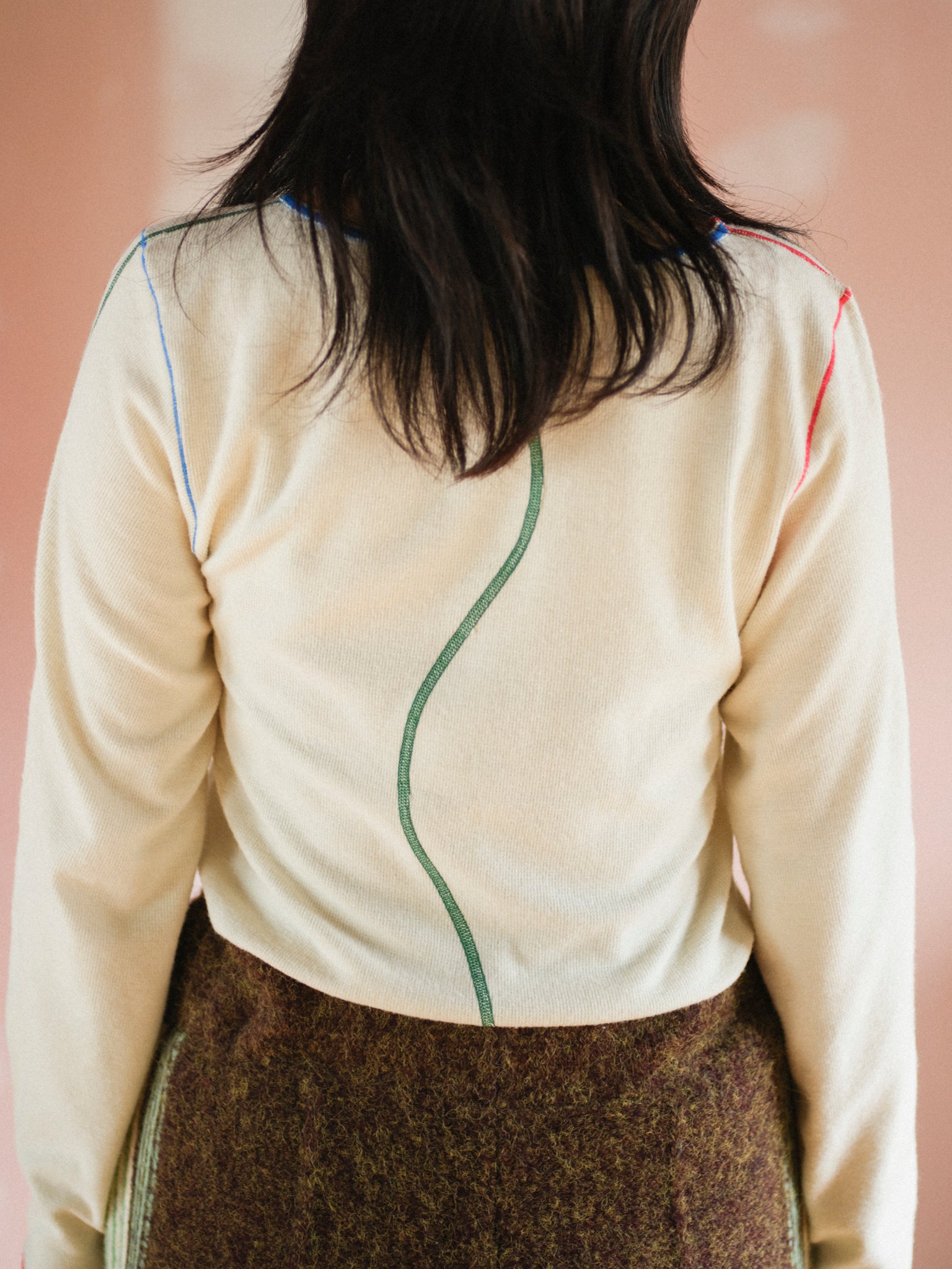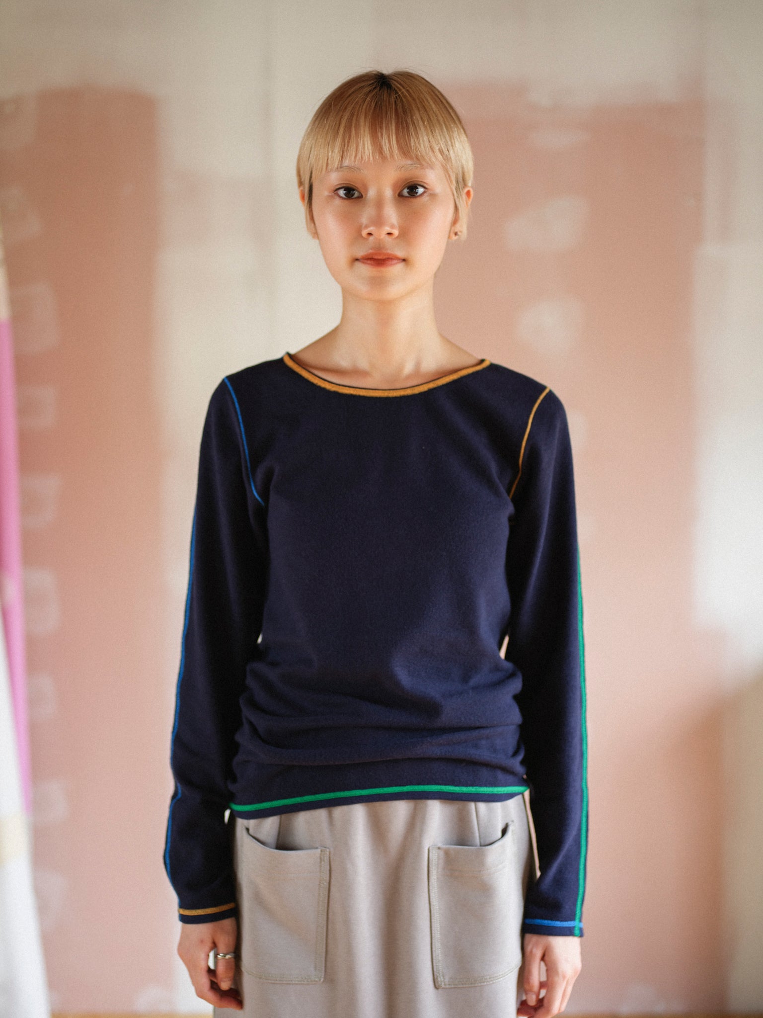 各ステッチに異なる色を配色し、見せてもかわいいインナーです。