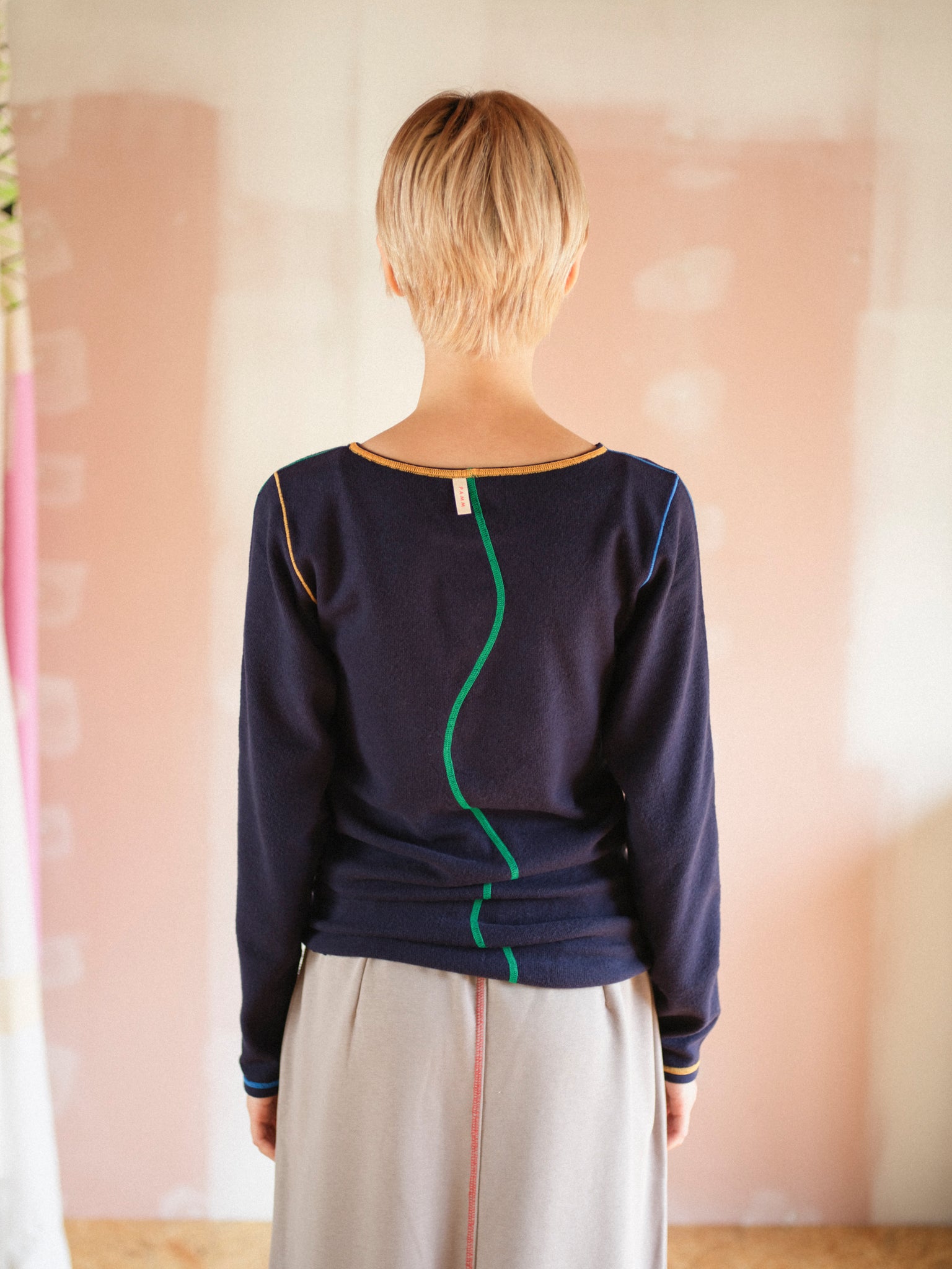 背中にはなみなみのステッチ。