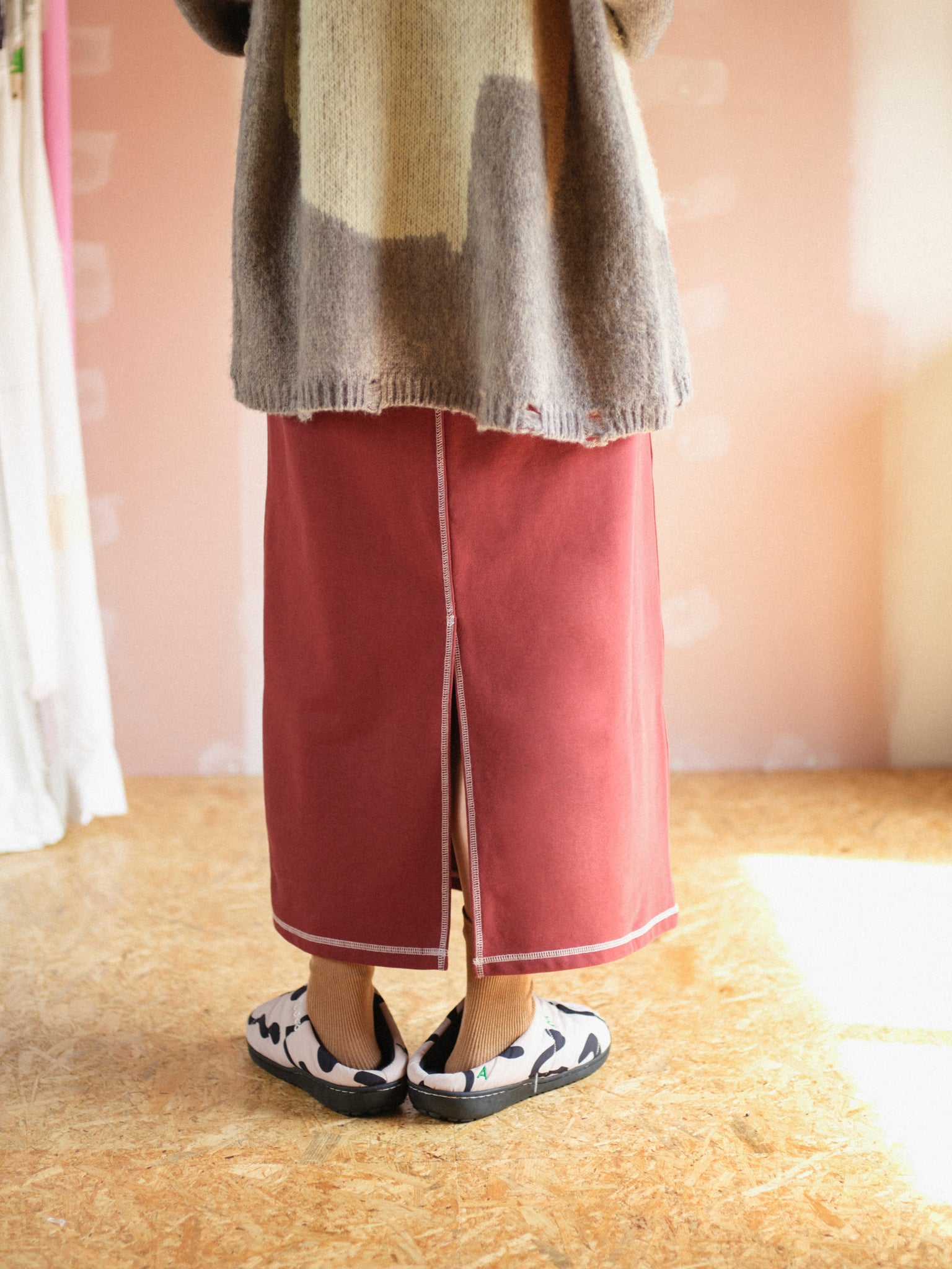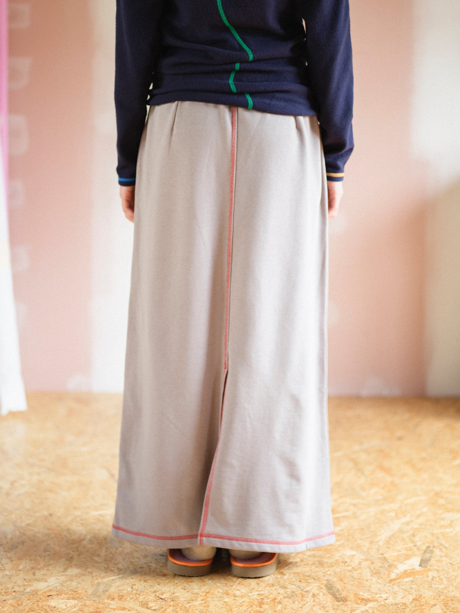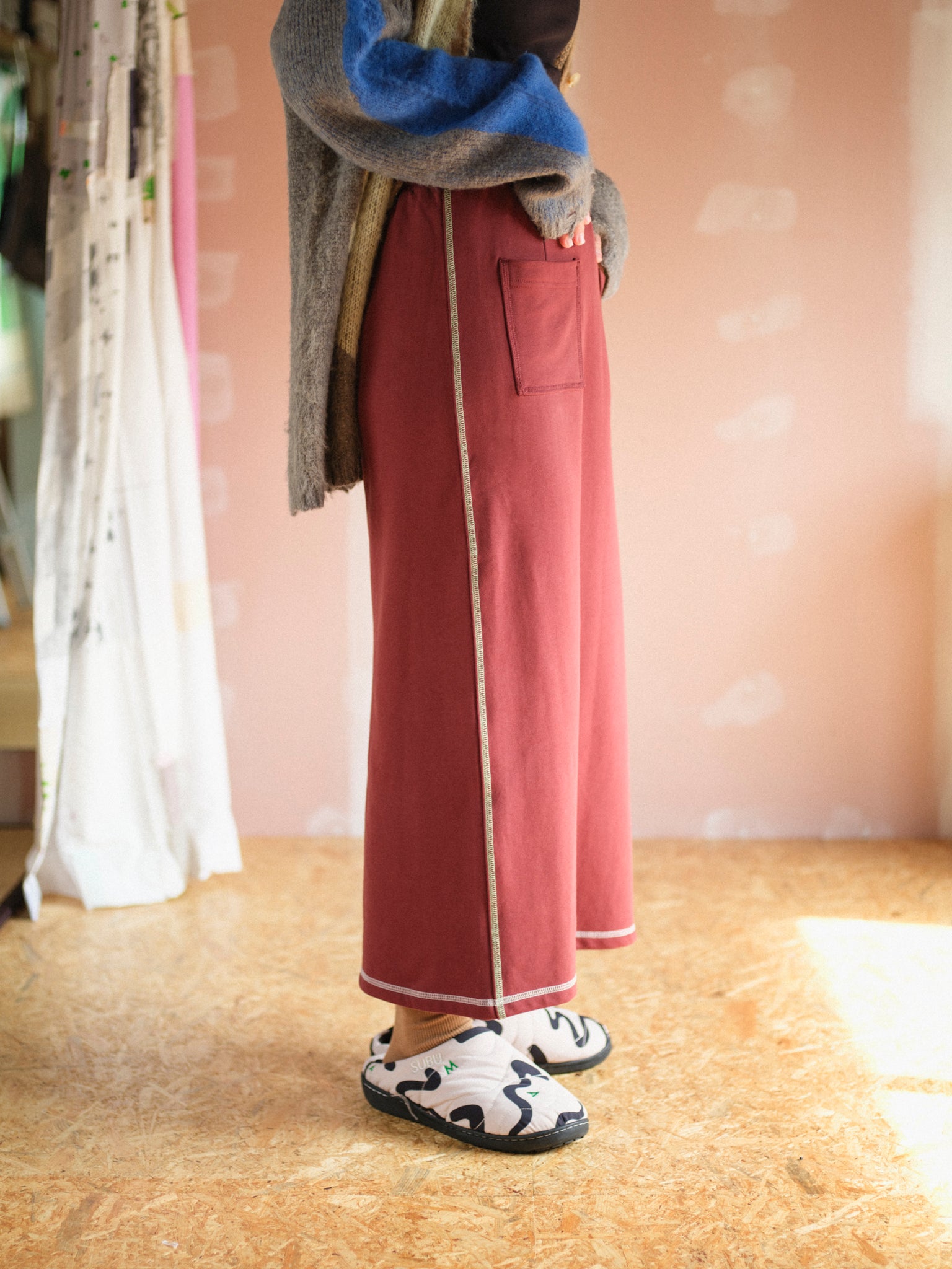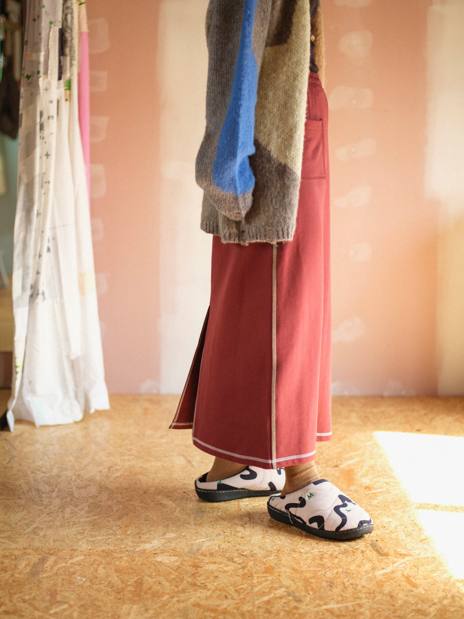 ウエストはゴム仕様で楽な着心地ですが、ダーツを入れることでスッキリとした印象に仕上げています。