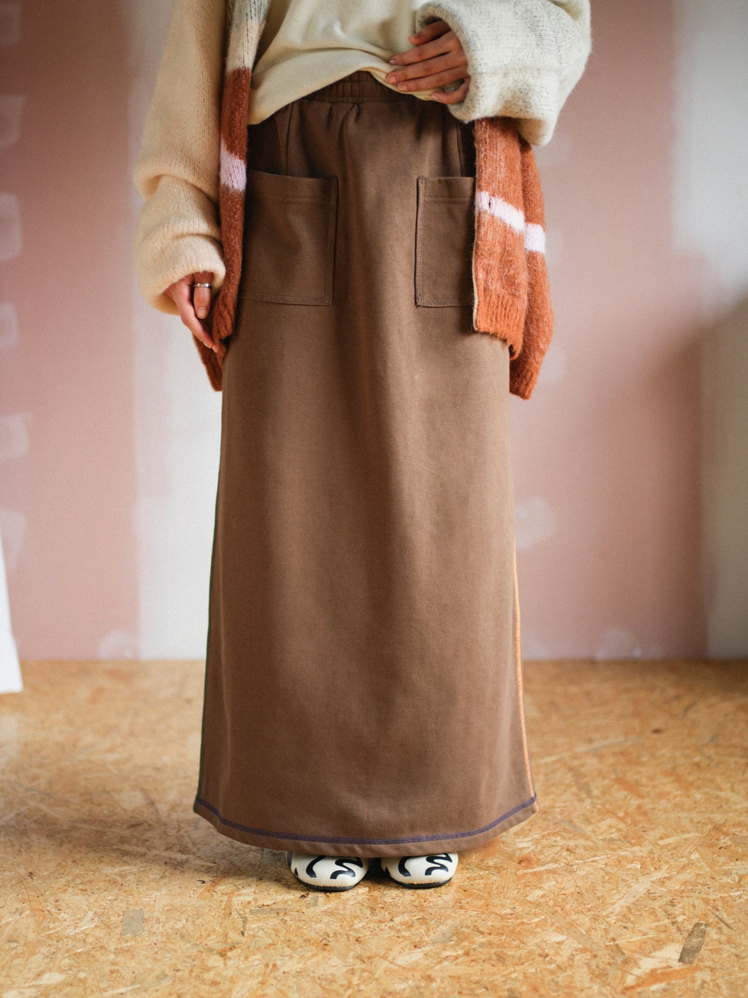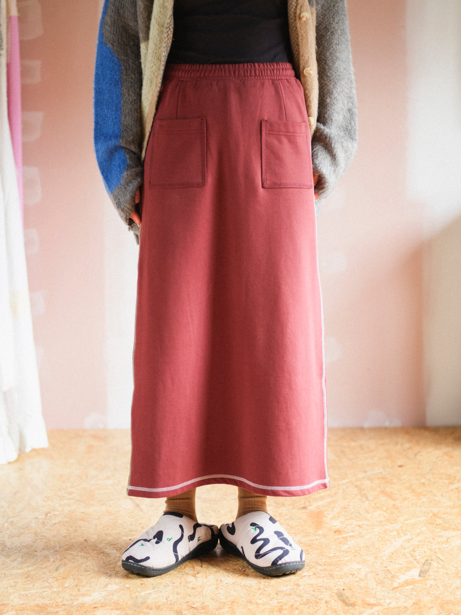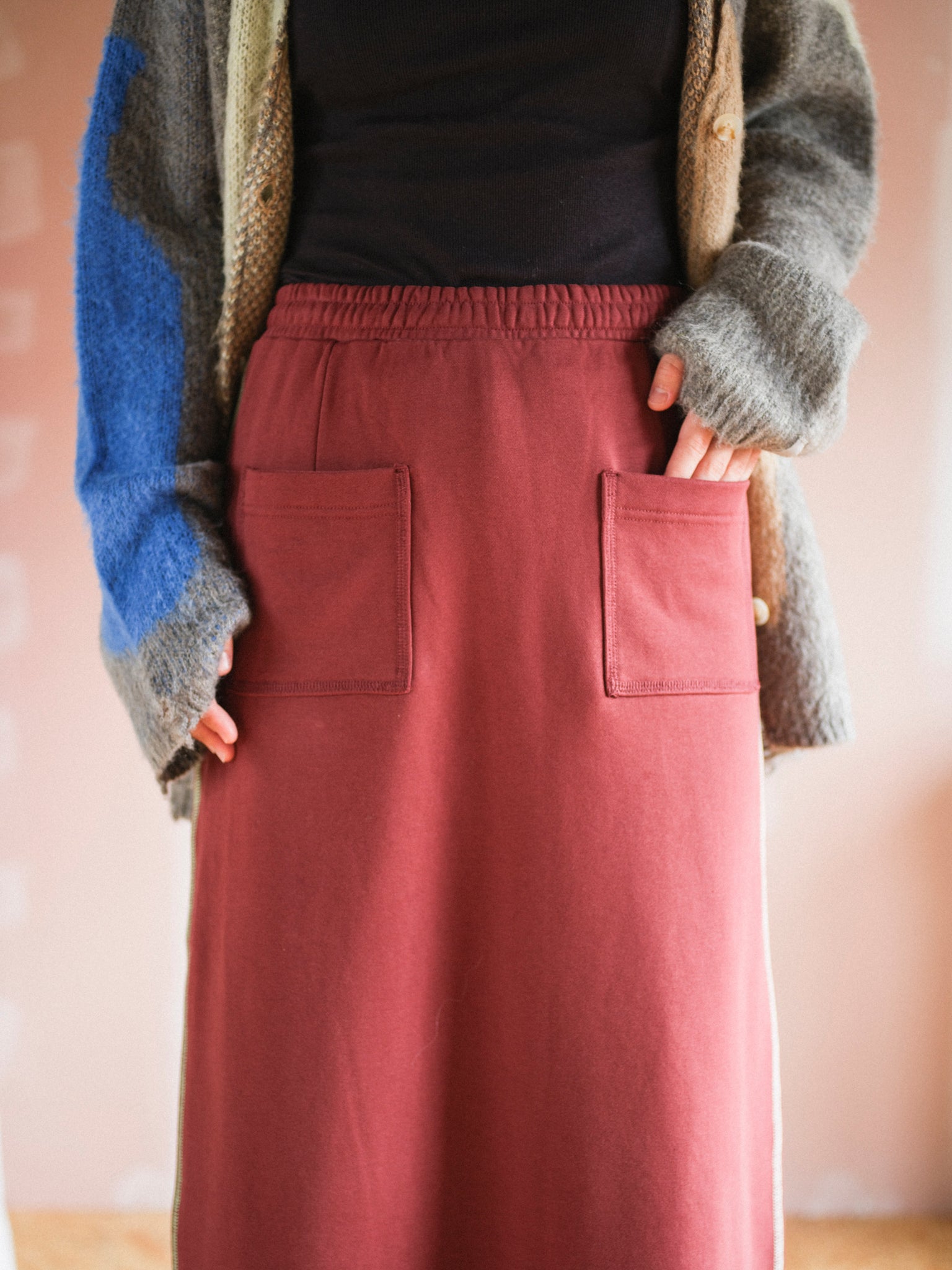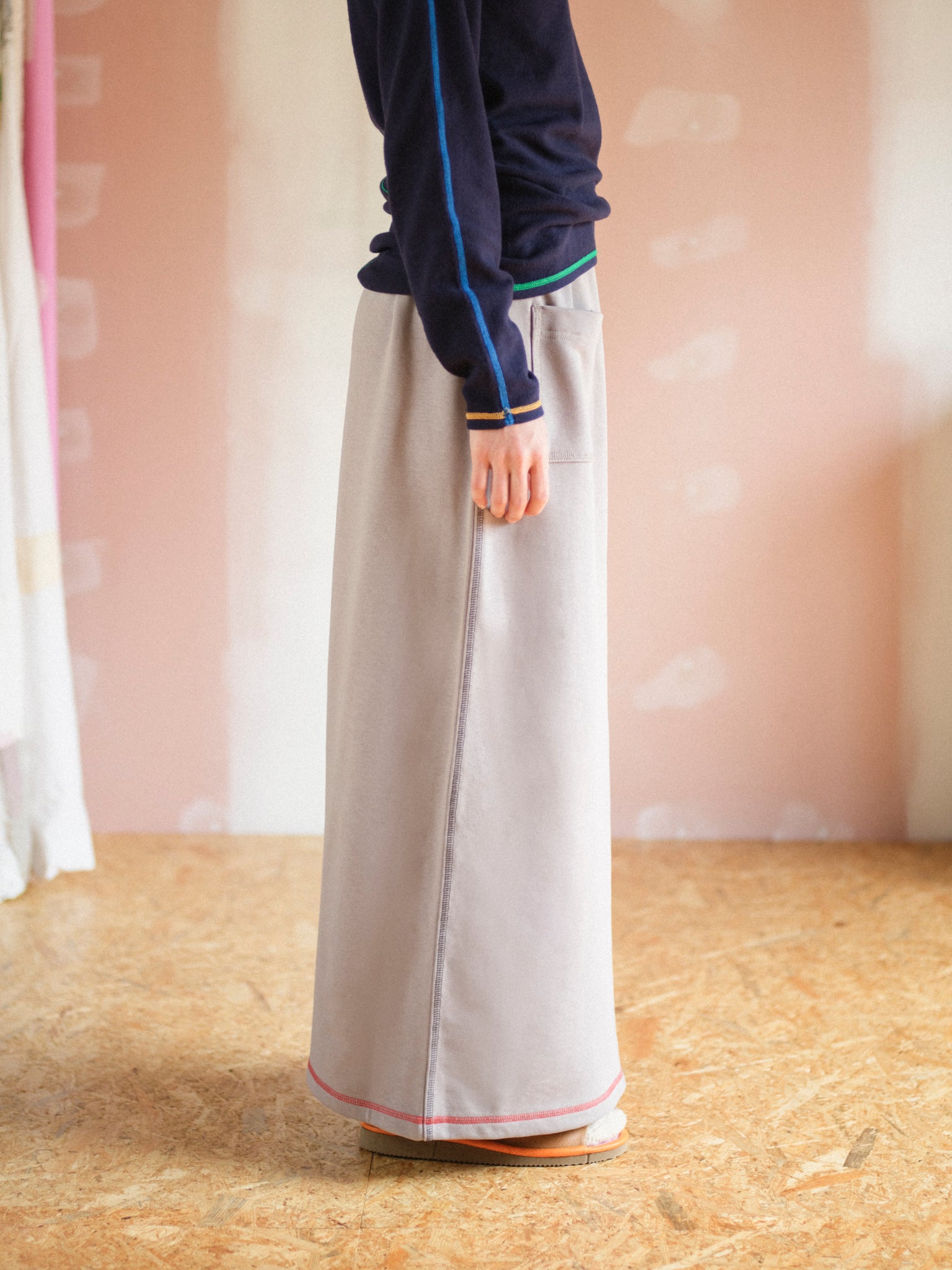 ウエストはゴム仕様で楽な着心地ですが、ダーツを入れることでスッキリとした印象に仕上げています。
