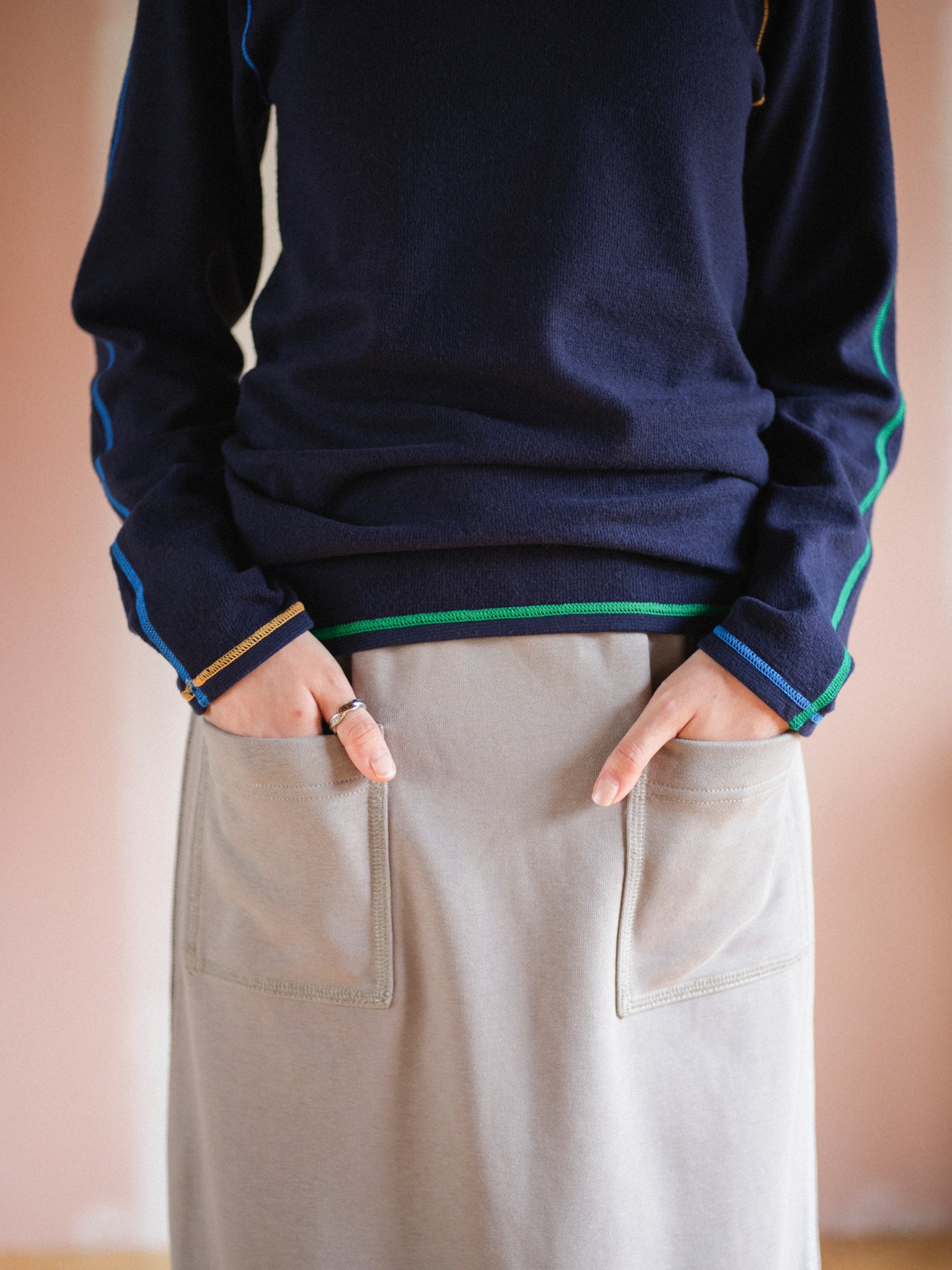 脇や裾には表出しのステッチを施し、シンプルな中にもPAMMらしいポイントをプラスしています。