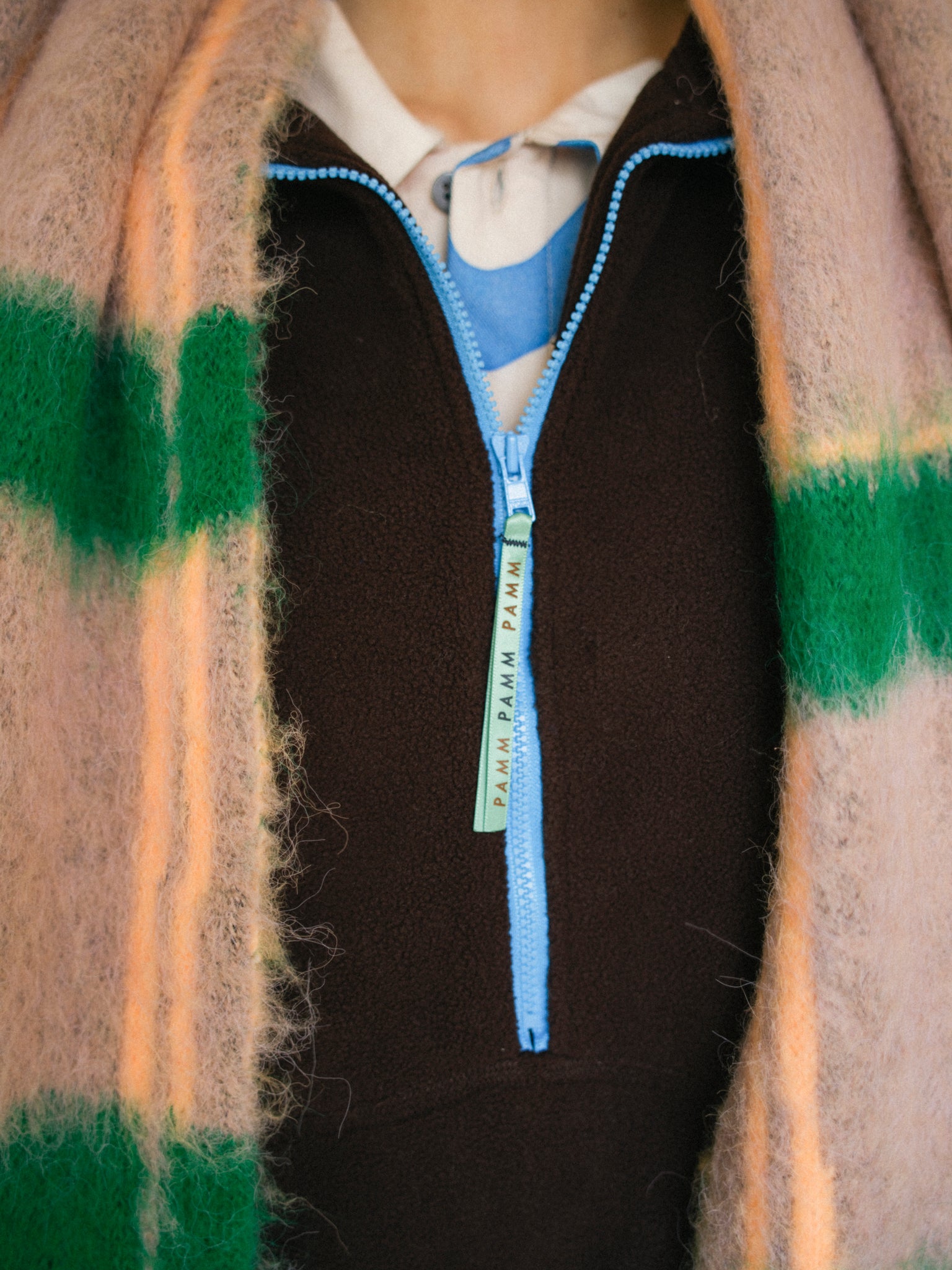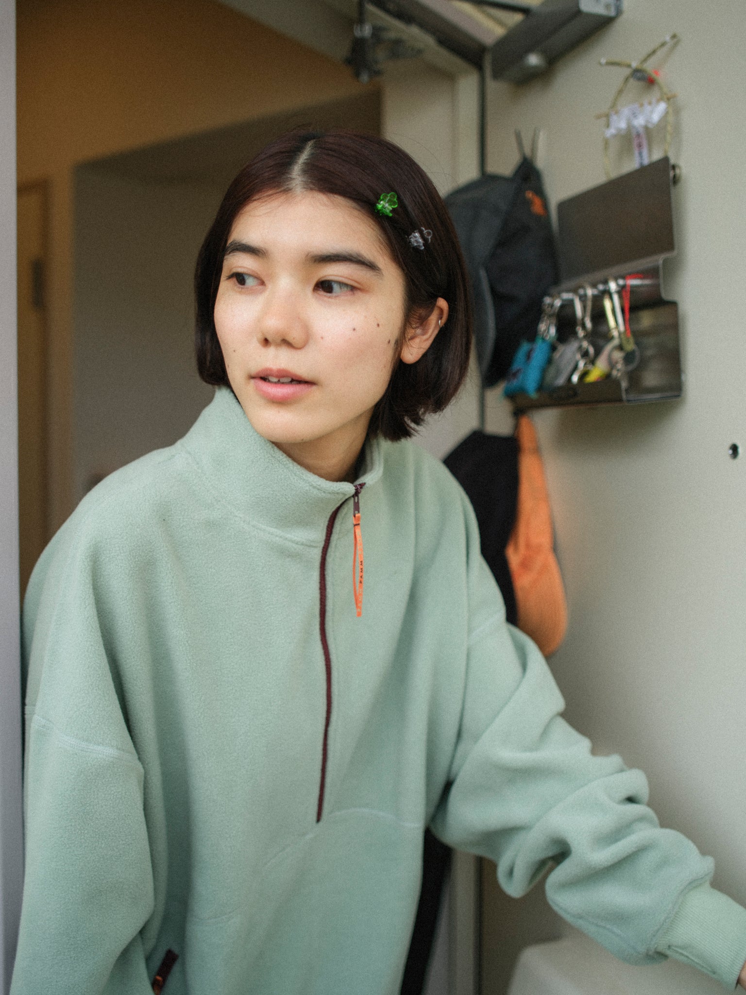 柔らかくあたたかい生地で仕立てたハーフジップのフリースです。